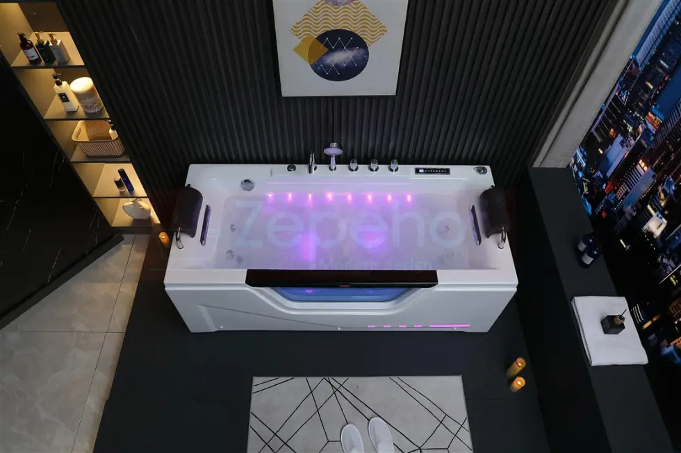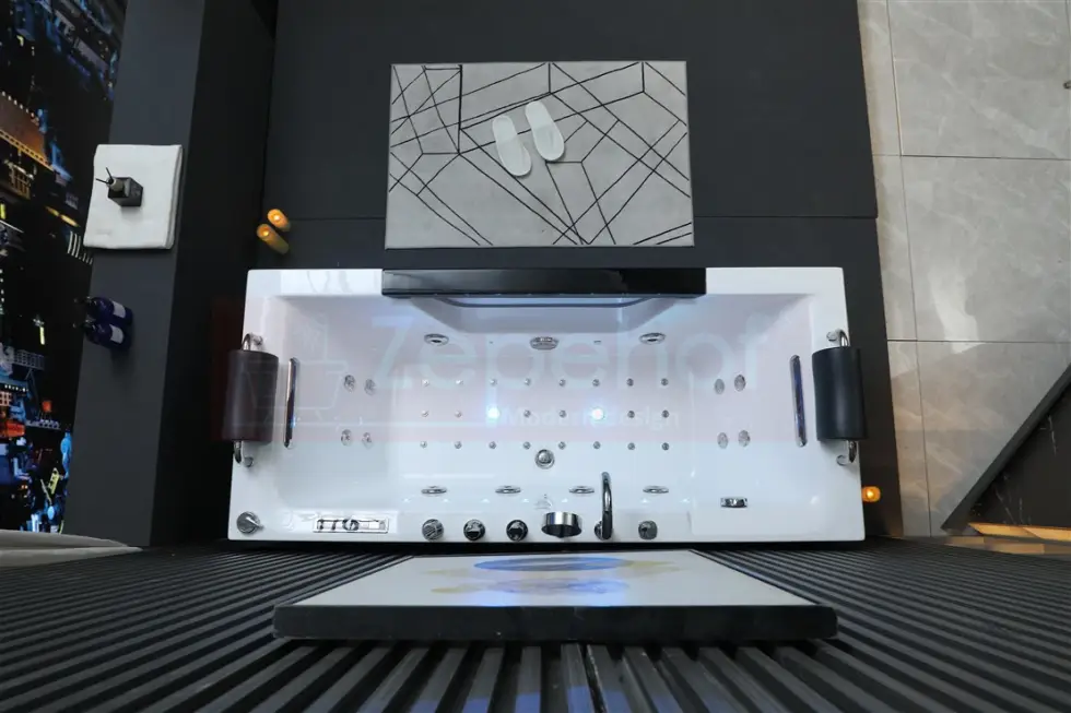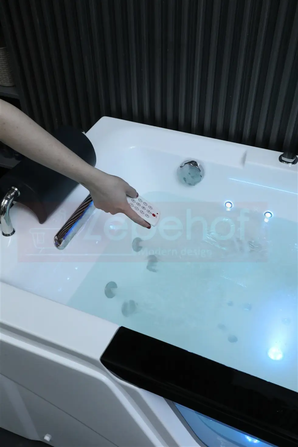 - Elektroniczny efektownie podświetlany panel sterowania (sterowanie: masaż, radio, oświetlenie, ozon, itd.)