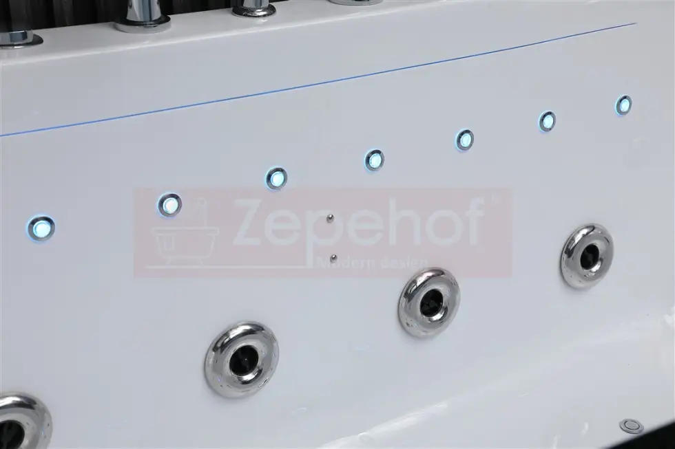 - Oświetlenie w wannie 8 szt led, chromoterapia (siedem kolorów: czerwony, zielony, niebieski, pomarańczowy, żółty, biały, fioletowy)