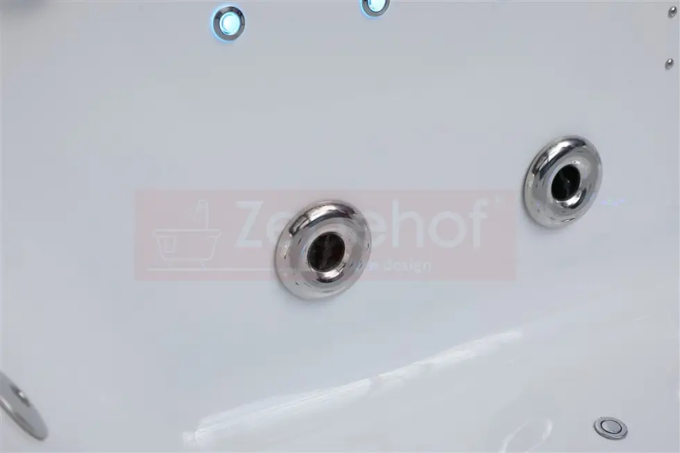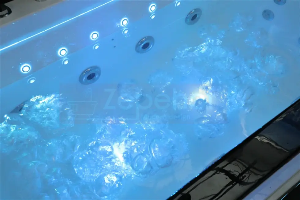 - Masaż wodny (6 szt dużych dysz obrotowych w ścianie wanny na każdą stronę, 4+4 silne dysze do masażu pleców na każdą stronę), pompa wodna ze zwrotnicą o mocy 2.0 HP (certyfikat TUV, CE)