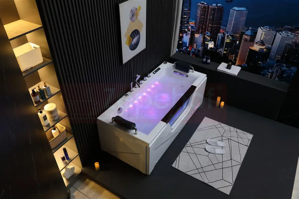 Wanna z hydromasażem wodnym i powietrznym – water effect LED 38 dysz do masaży. Okna LEDowe !!!