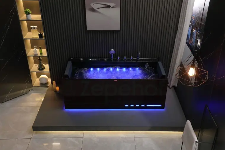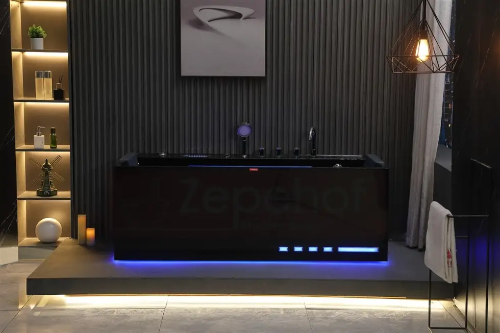 Czarna Wanna z hydromasażem EB-D710 prostokątna 170cmx80cmx60cm z podgrzewaczem+pilot