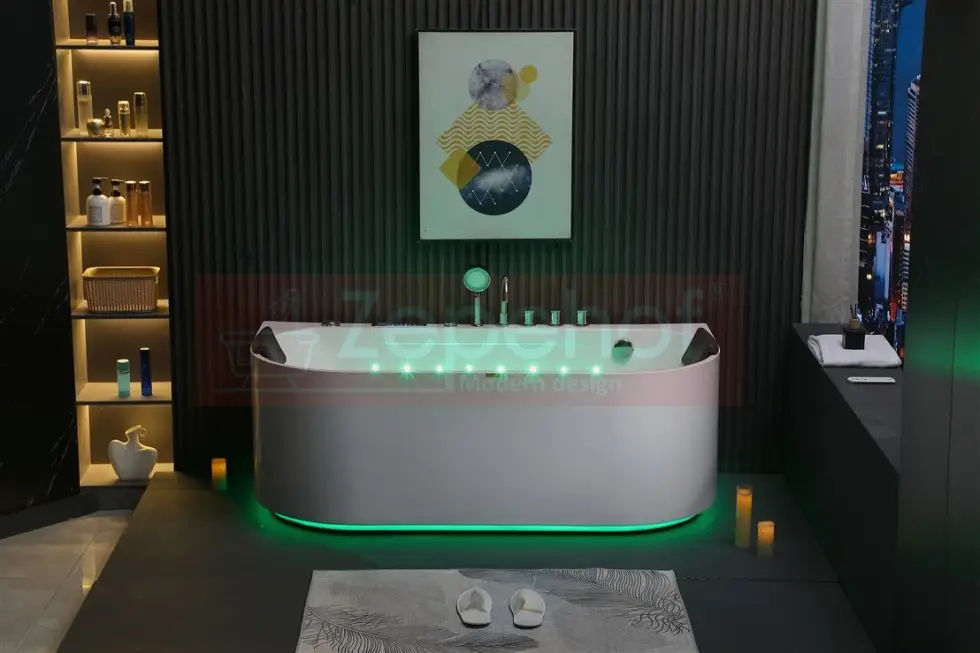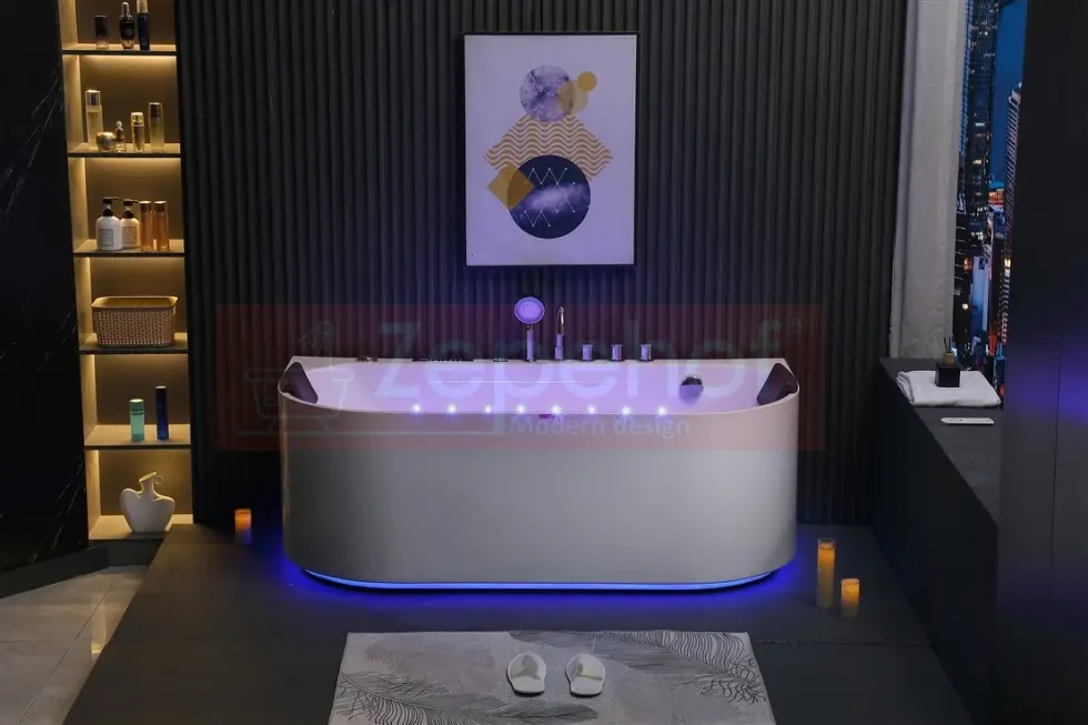 - Uwaga: dysze płaskie led w dnie wanny. Nic nie uwiera podczas kąpieli.