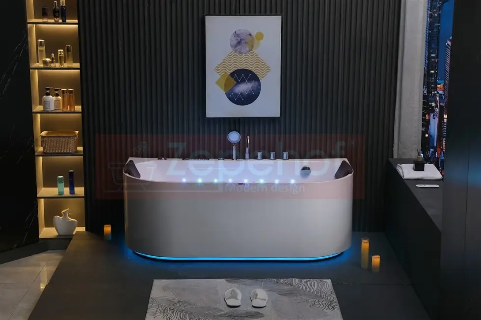Wanna z hydromasażem wodnym LED, i powietrznym – water effect LED w sumie 52 mocnych dysz do masaży.