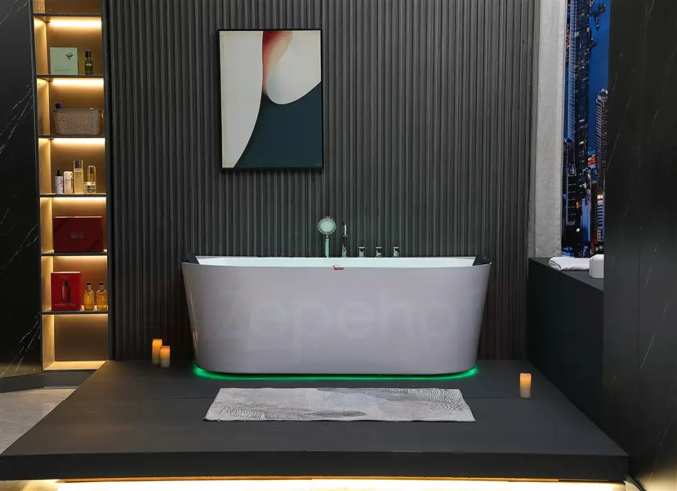 - Oświetlenie led RGB przy dnie wanny, chromoterapia (siedem kolorów: czerwony, zielony, niebieski, pomarańczowy, żółty, biały, fioletowy)