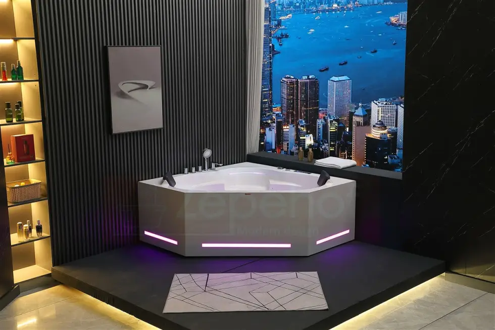 Wanna z hydromasażem wodnym LED i powietrznym – water effect LED 49 dysz do masaży. Okna LEDowe !!!