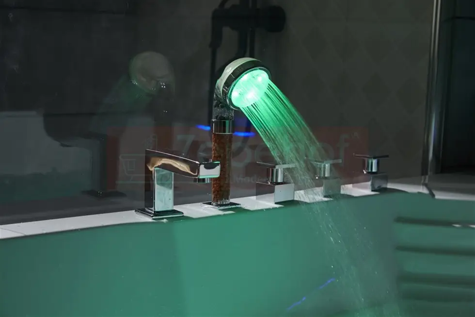 - Nowoczesna słuchawka prysznicowa LED: zmienia kolor w zależności od temperatury wody (zielony, niebieski, czerwony) bez baterii – idealnie dopasowane do wnętrza wanny i zapewnia komfort użytkowania.
