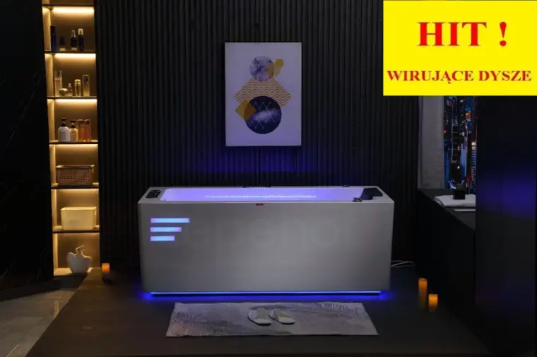 W wannie wykorzystano najnowszą technologię masażu wodnego dyszami obrotowymi, rotującymi.