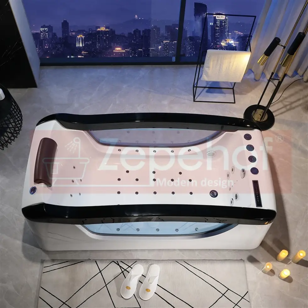 - Elektroniczny efektownie podświetlany panel sterowania (sterowanie: masaż, radio, oświetlenie, ozon, itd.)+pilot zdalnego sterowania