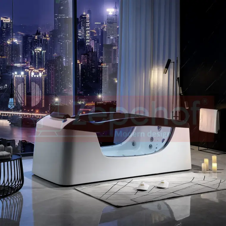 - Masaż wodny (9 dużych dysz w ścianie wanny w tym 5 małych dysze do masażu pleców), pompa wodna ze zwrotnicą o mocy 1450W (certyfikat TUV, CE)