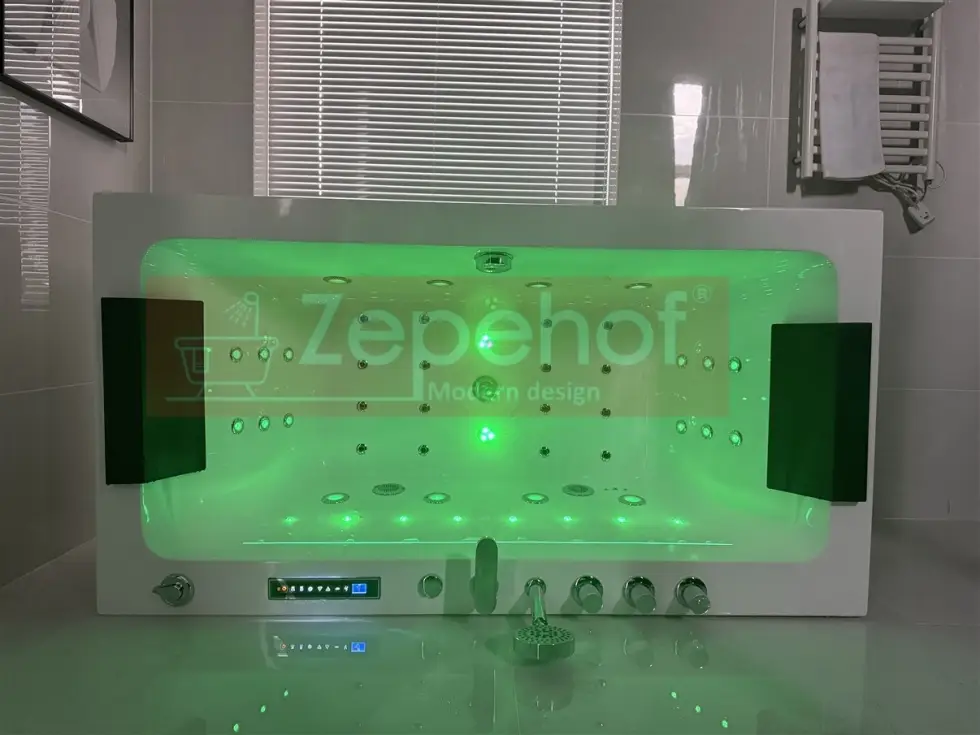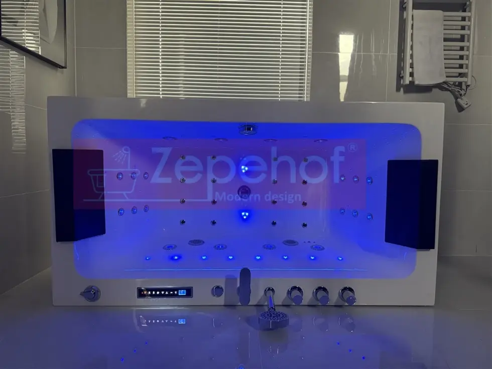 • Masaż powietrzny water effect (16 mocnych dysz, plus 2 duże dysze LED do masażu powietrznego w dnie wanny, razem 18 dysz powietrznych), mocna pompa powietrza o moc700W (certyfikat TUV)