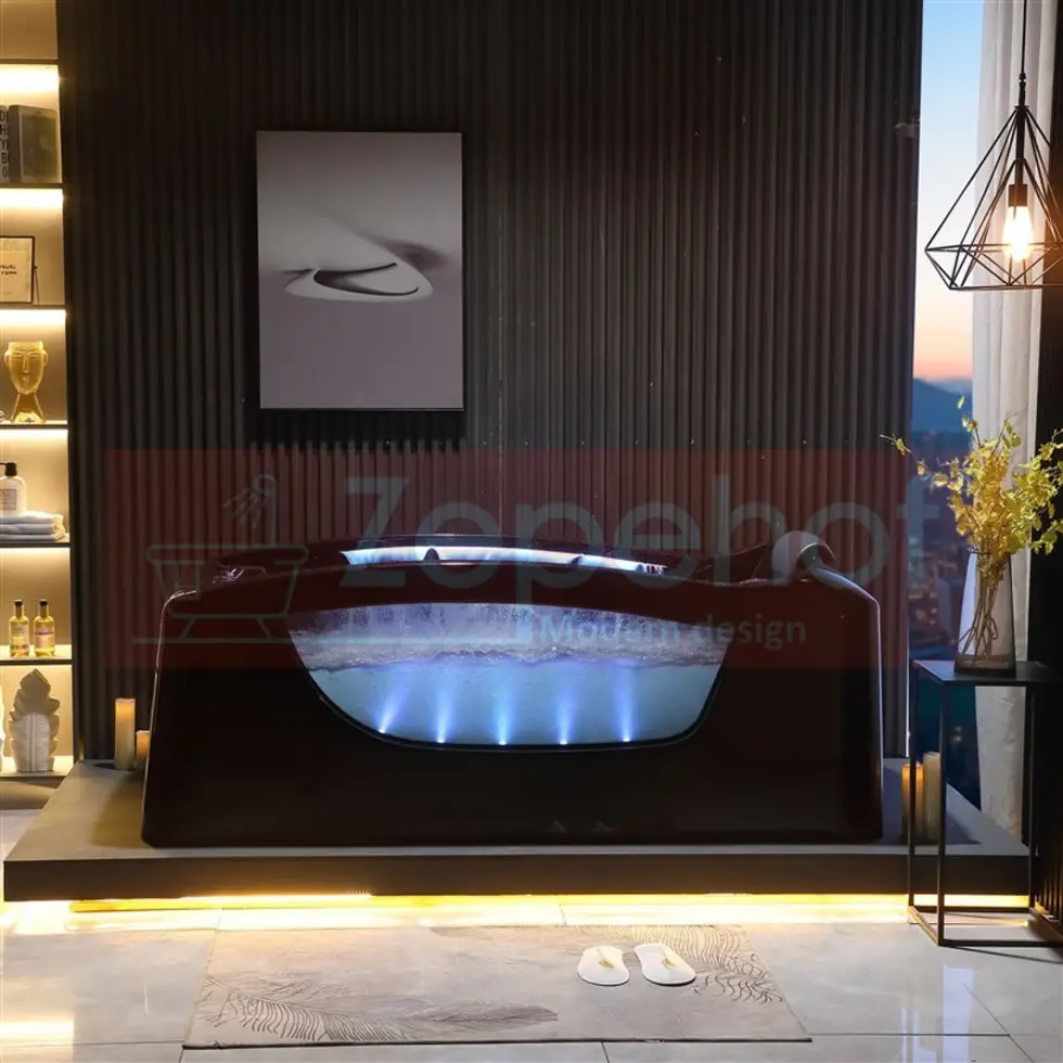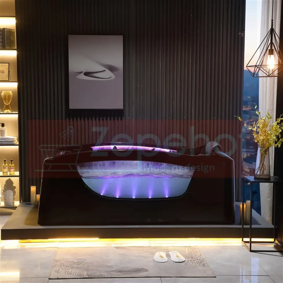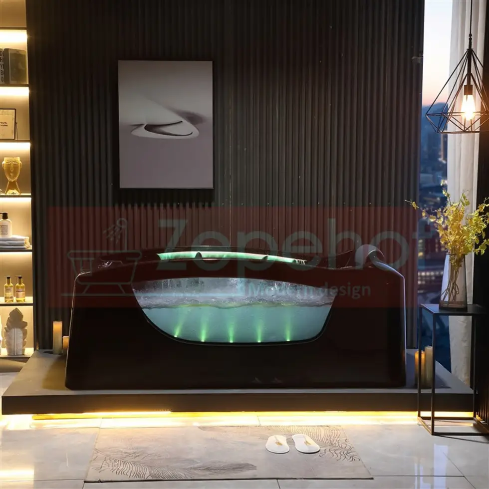 Czarna wanna z hydromasażem EB-D034 prostokątna 187cmx90cmx75cm Wodospad LED x 2+Ambiente z podgrzewaczem+pilot