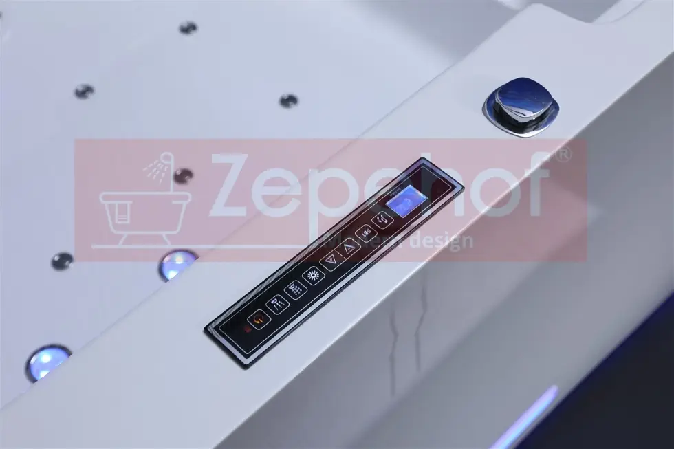 • Elektroniczny efektownie podświetlany panel sterowania (sterowanie: masaż, radio, oświetlenie, ozon, itd.)+pilot zdalnego sterowania
