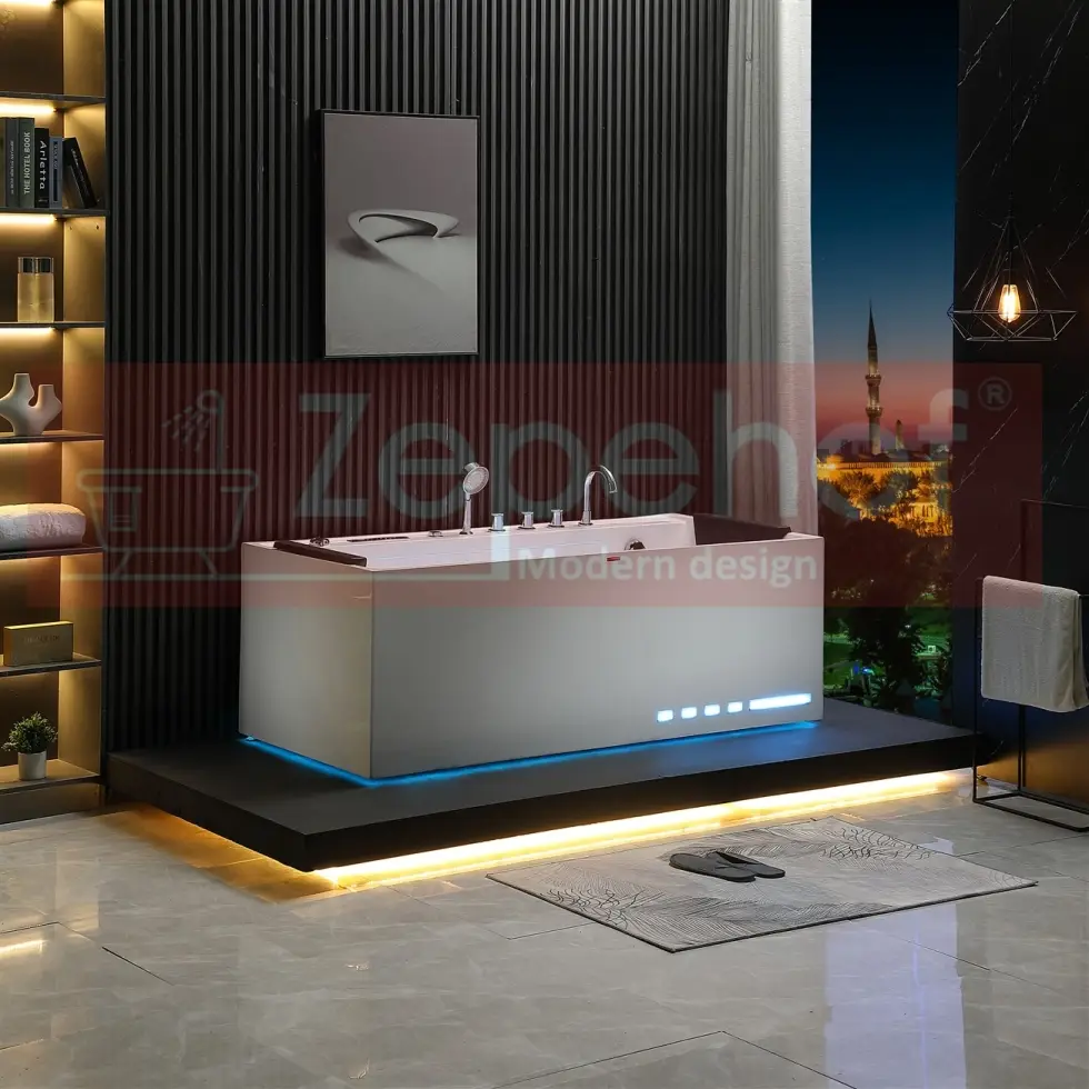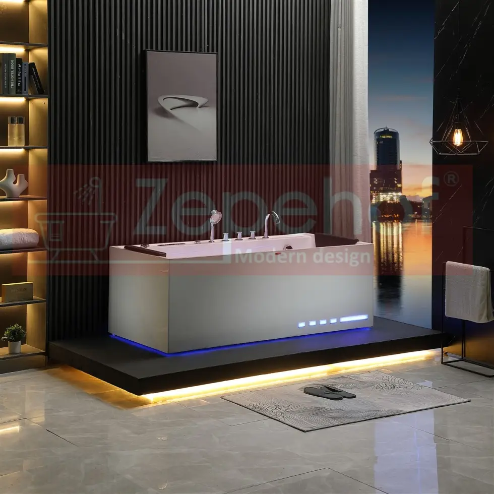 - masaż wodny (3+3 dużych dysz LED w ścianie wanny na każdą stronę, 4+4 silne dysze do masażu pleców na każdą stronę), pompa wodna ze zwrotnicą o mocy 1.2HP (certyfikat TUV, CE)